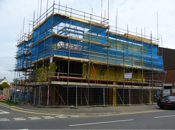 Demolition of existing property and construction of block of six modern apartments and a commercial unit.